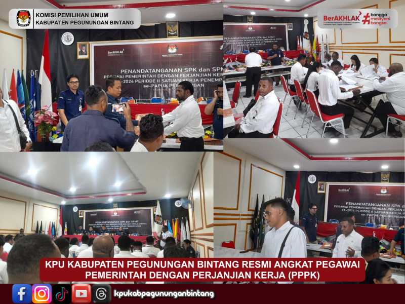 Sebanyak 3 orang pegawai resmi diangkat sebagai PPPK di lingkungan KPU Kabupaten Pegunungan Bintang setelah melalui serangkaian tahapan seleksi yang dilaksanakan sesuai dengan ketentuan peraturan perundang-undangan.