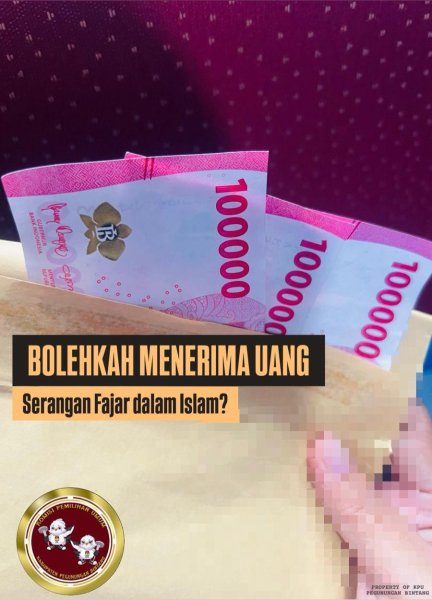 Serangan fajar atau politik uang adalah perbuatan yang dilarang keras termasuk memberi dan menerima karena mengandung unsur suap (risywah), merusak keadilan, dan menyalahgunakan proses demokrasi.