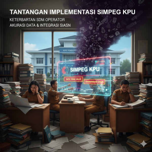 Upaya Komisi Pemilihan Umum (KPU) dalam memperkuat tata kelola Aparatur Sipil Negara (ASN) melalui implementasi Sistem Informasi Manajemen Kepegawaian (SIMPEG KPU) di seluruh tingkatan, dari pusat hingga Kabupaten/Kota, masih menghadapi sejumlah tantangan, terutama terkait akurasi data awal dan kesiapan sumber daya manusia di unit kerja daerah.
