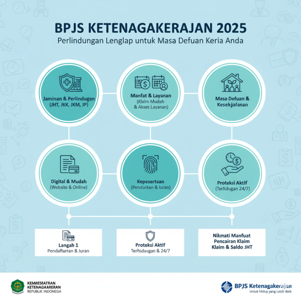 BPJS Ketenagakerjaan adalah perlindungan wajib yang harus dimiliki semua pekerja, baik formal maupun informal. Tahun 2025 menghadirkan inovasi, perbaikan layanan digital, kemudahan klaim, serta manfaat yang semakin besar bagi peserta. Dengan informasi lengkap ini, masyarakat dapat memahami secara menyeluruh manfaat, program, cara daftar, hingga cara klaim BPJS Ketenagakerjaan dengan benar.