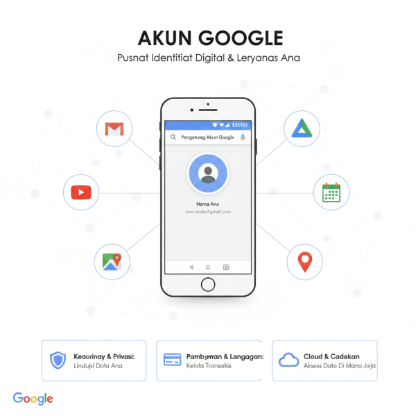 Akun Google adalah identitas digital yang memungkinkan pengguna mengakses seluruh layanan Google menggunakan satu email dan password. Layanan tersebut meliputi Gmail, YouTube, Google Drive, Google Maps, Play Store, Google Photos, hingga fitur keamanan seperti Find My Device.