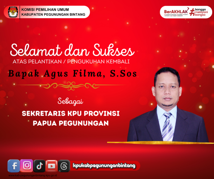 Selamat dan Sukses atas dilantiknya kembali Bapak Agus Filma, S.Sos. Sebagai Sekretaris KPU Provinsi Papua Pegunungan, 18 Juli 2025.
